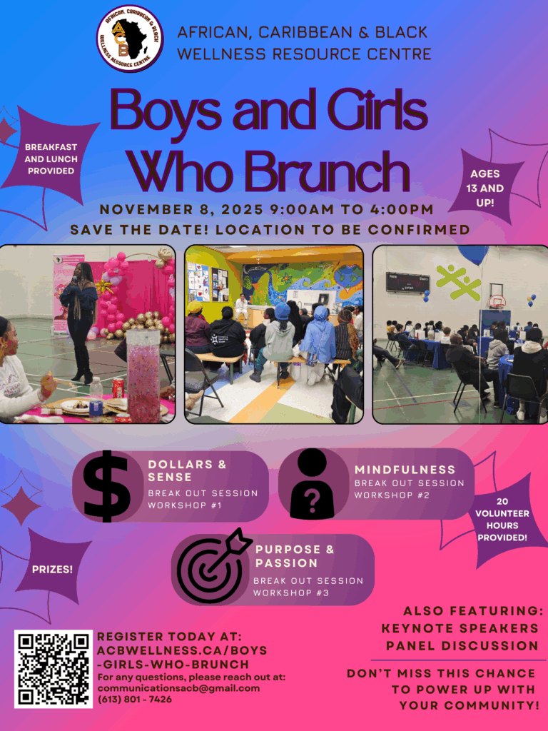 The African, Caribbean & Black Wellness Resource Centre (ACB) is a community-driven organization dedicated to uplifting, educating, and empowering Black and marginalized individuals in the Ottawa/Gatineau region.
